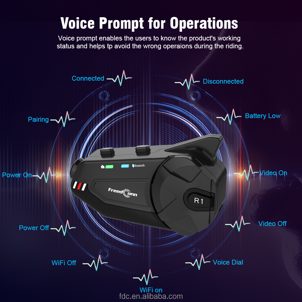 FreedConn R1-PLUS 1080P HD Camera Recorder Recorder With Bluetooth 6-Way 1000 Meters Group Intercom Helmet Camera Headset