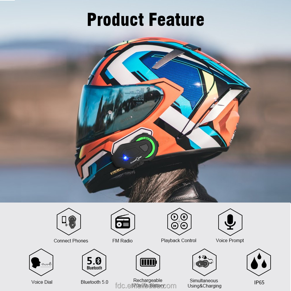 TMAX-M Motorcycle Helmet Headset Wireless Bluetooth Music Headset with FM Radio (without Intercom Function)
